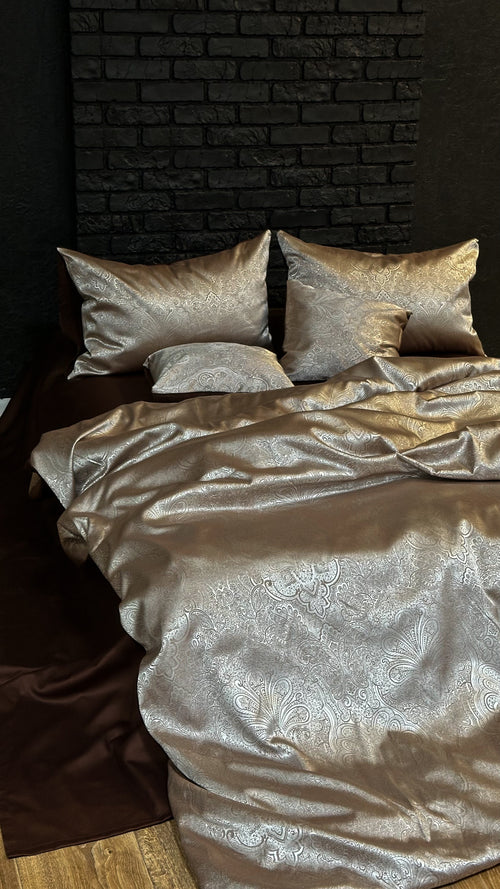 Jacquard & Cotton Sateen Bedding Set - Chocolate